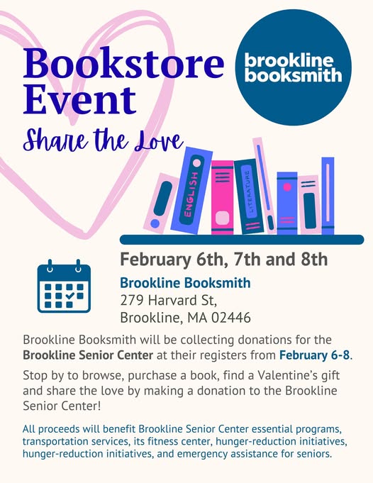 An extensive list of Senior Center events is at the Brookline Senior Center web site.